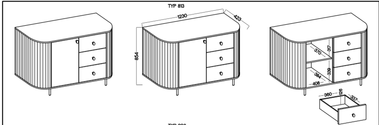 Specyfikacja komody Ovalio 1F 3S